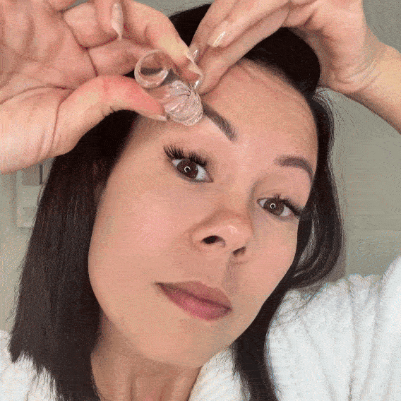Gently stamp the delicate skin around your lower eyelids with a 50% overlap. Repeating for 2-3 passes for best results.
